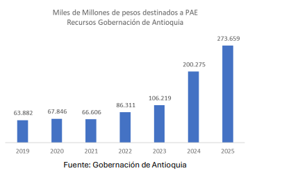 La Gobernación de Antioquia avanza con acciones contundentes para ayudar a disminuir el hambre de las poblaciones más necesitadas del departamento. En 2024 y 2025 los recursos del Programa de Alimentación Escolar – PAE fueron quintuplicados por el Gobernador Andrés Julián frente al periodo 2020 a 2023.